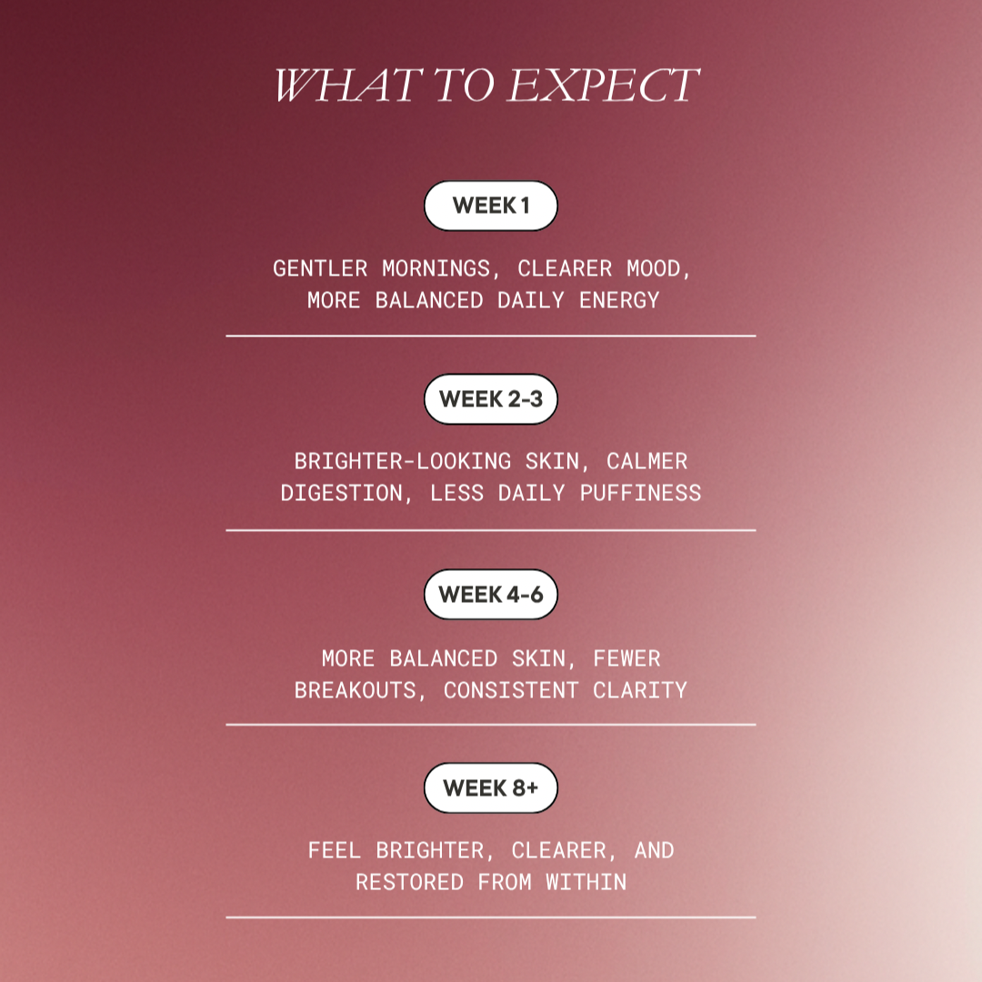 Result: Glowing, hydrated, plump skin with reduced fine lines, even tone, and visible radiance; stronger, healthier hair and nails.